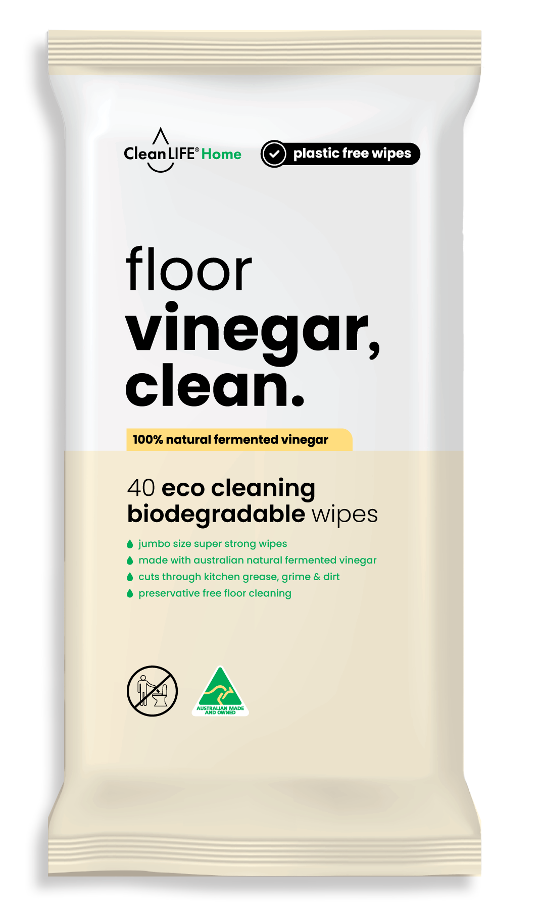 Floor vinegar clean wipes are a pure eco cleaning wipe utilising the power of naturally fermented vinegar to provide a preservative-free cleaner for floor surfaces.